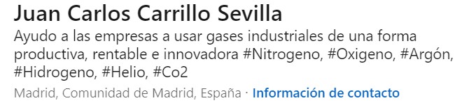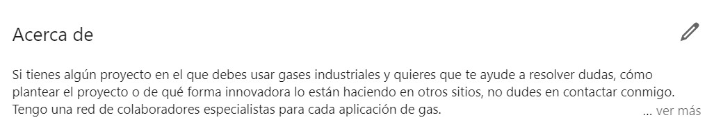 Por supuesto, puedes usar mi perfil como ejemplo. ¿Queda claro que vendo gases? ¿Queda claro puedo solucionar los problemas de una instalación de gases? ¿Se ven instalaciones botellas y tanques, como los que le va a hacer falta a mi posible cliente?…